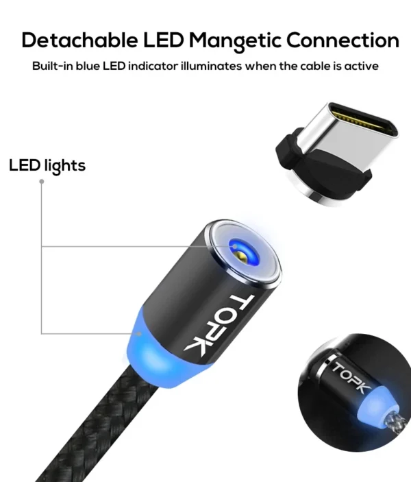 Câble Magnétique LED – Connecteur Rotatif 360°
