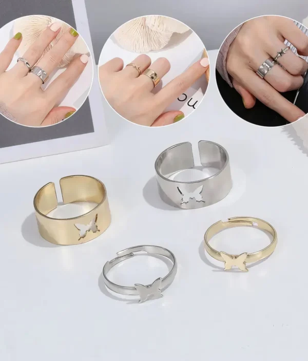 Ensemble de Bagues – Papillon Doré & Argenté