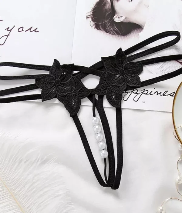 String Ouvert à Perles – Fleurs Brodées 🌸