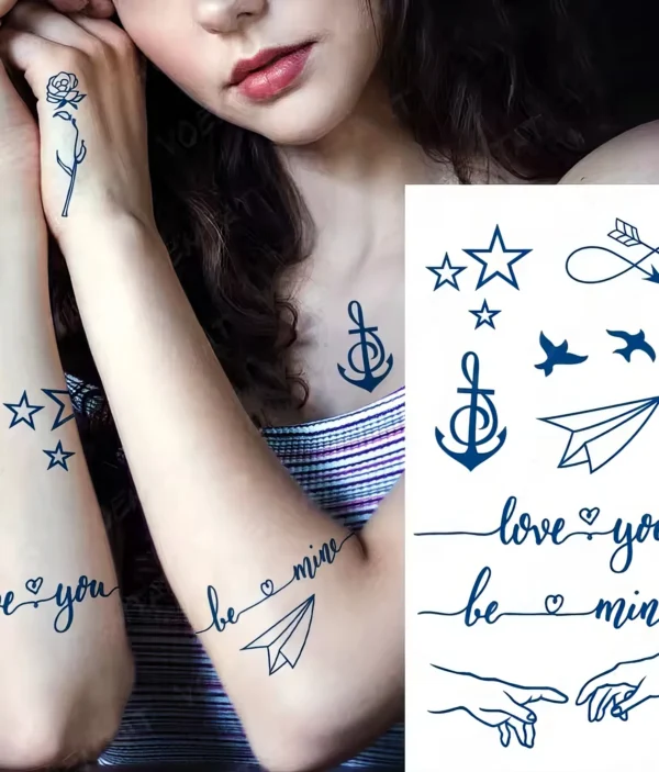 Tatouages Temporaires – Messages d’Amour & Symboles Délicats