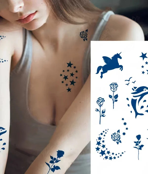 Tatouages Temporaires – Dauphin, Licorne & Étoiles Féeriques