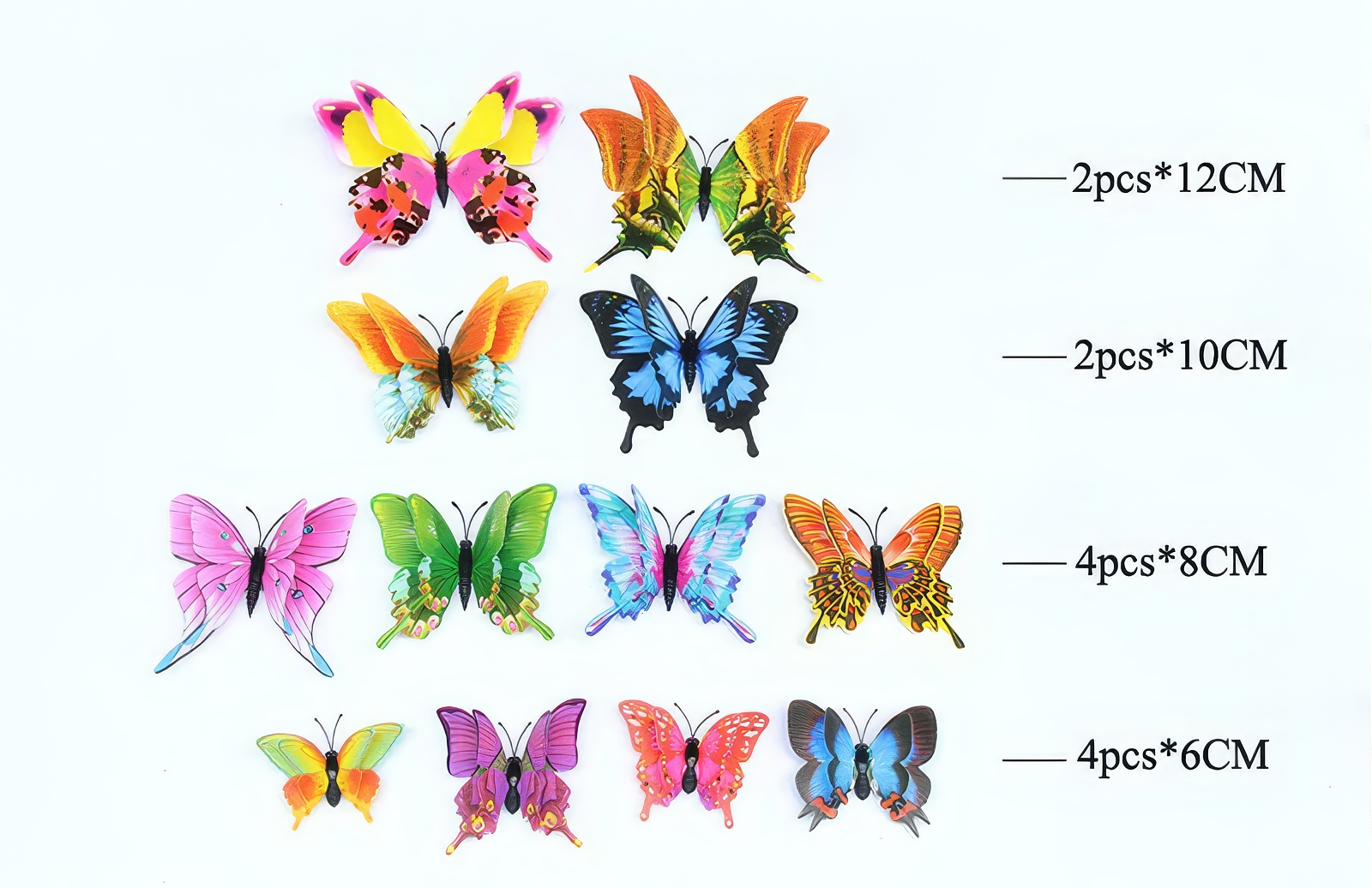 • Ensemble de 12 Pièces : Contient 12 papillons de différentes tailles pour permettre des arrangements créatifs et personnalisés.