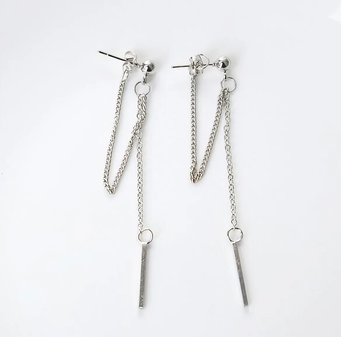 • 1 paire de boucles d’oreilles longues avec chaîne et pendentif.