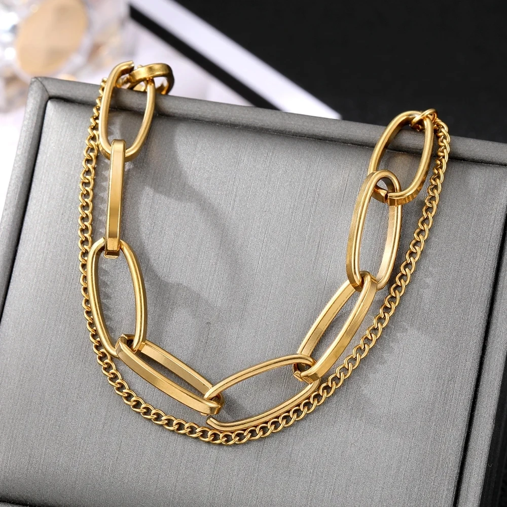Design : Double chaîne avec maillons géométriques modernes
