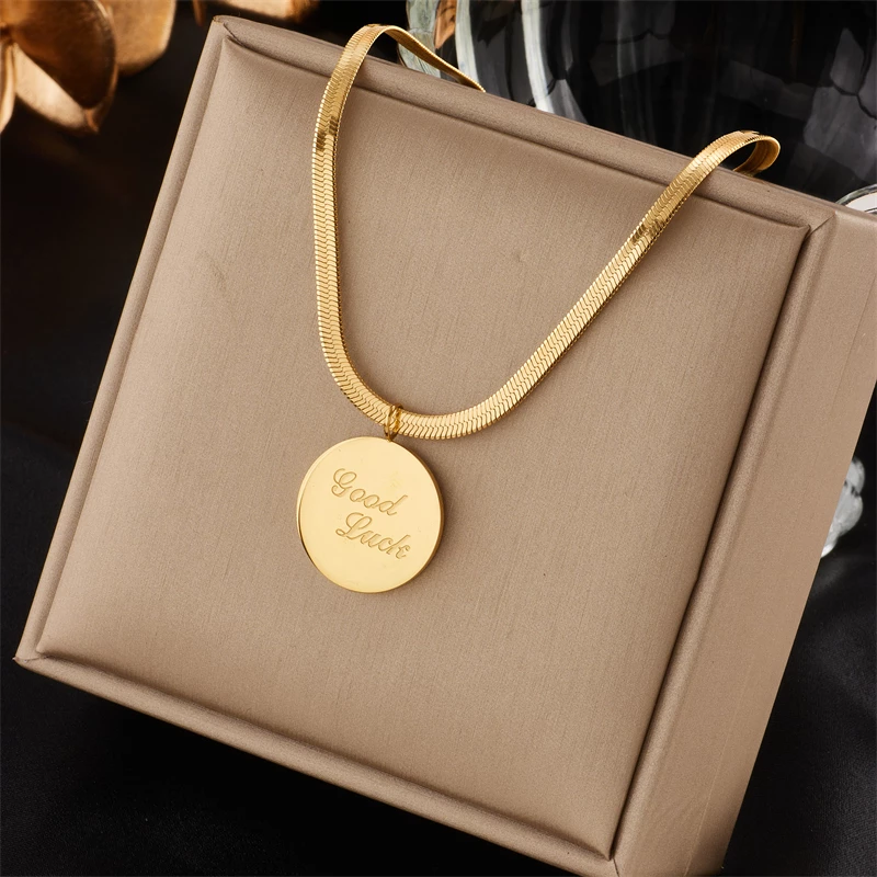 âą Design : ChaĂźne fluide avec pendentif rond gravĂ© “Good Luck”