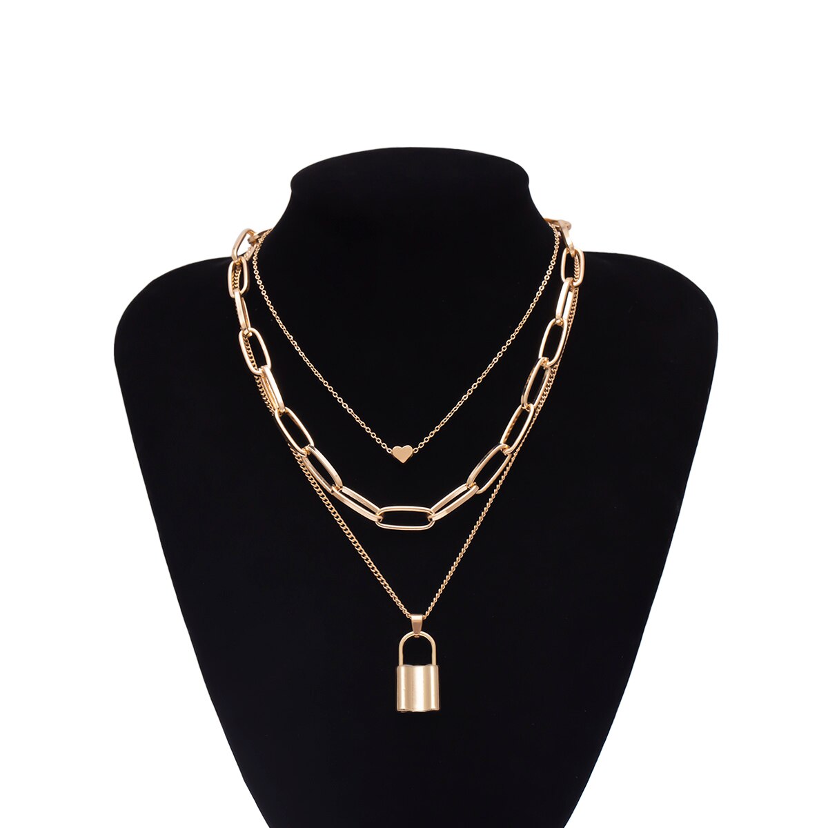• Design : 3 rangs (cœur minimaliste + maillons + cadenas)