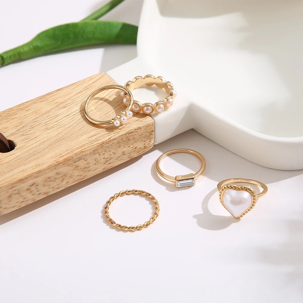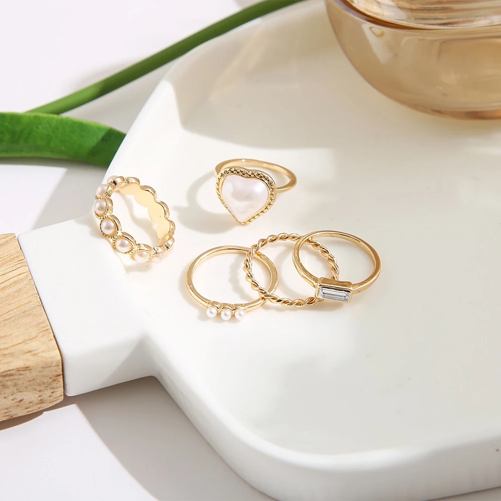 Ensemble de Bagues Élégantes en Or avec Perles et Motifs Romantiques 💍✨
