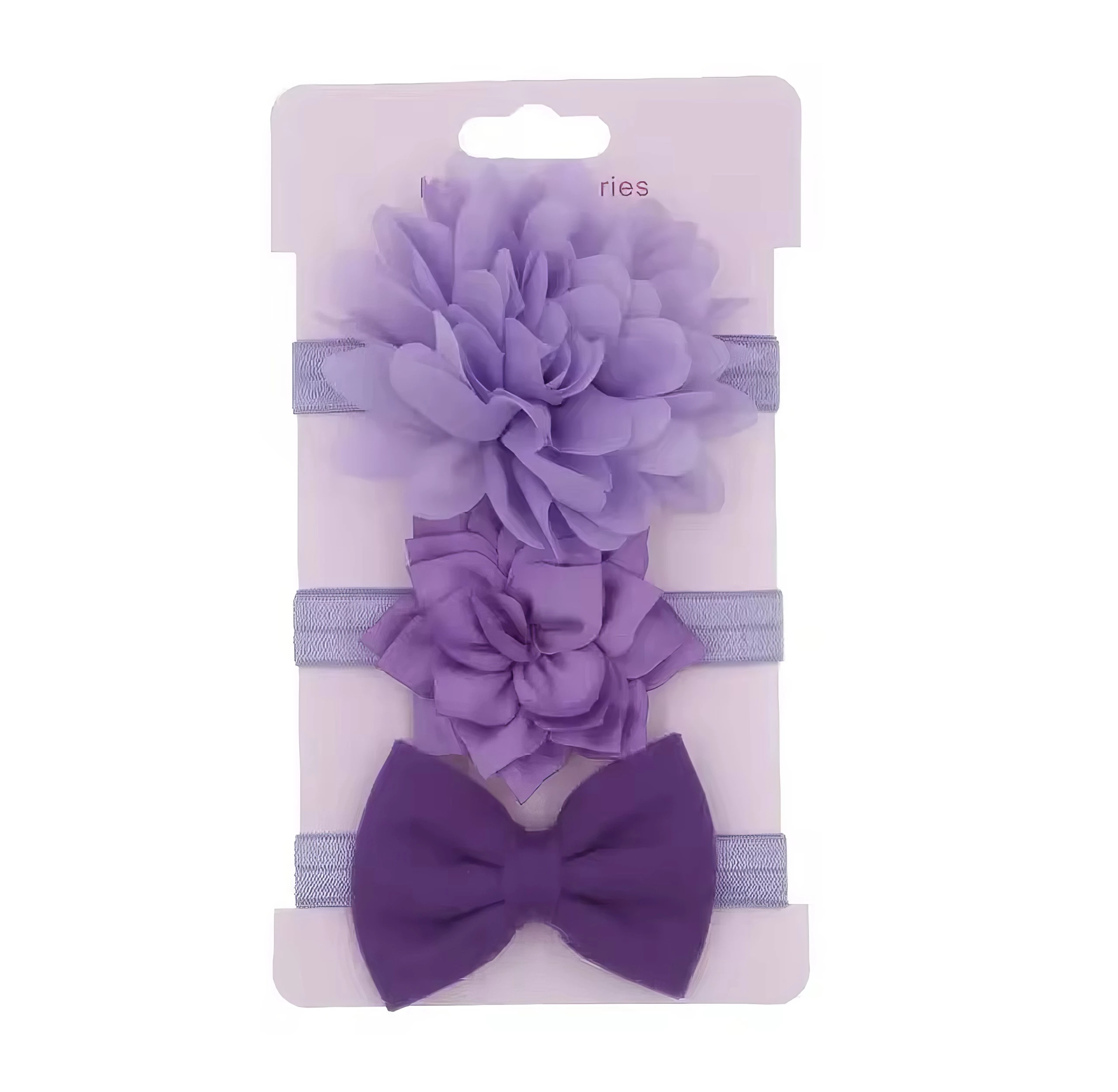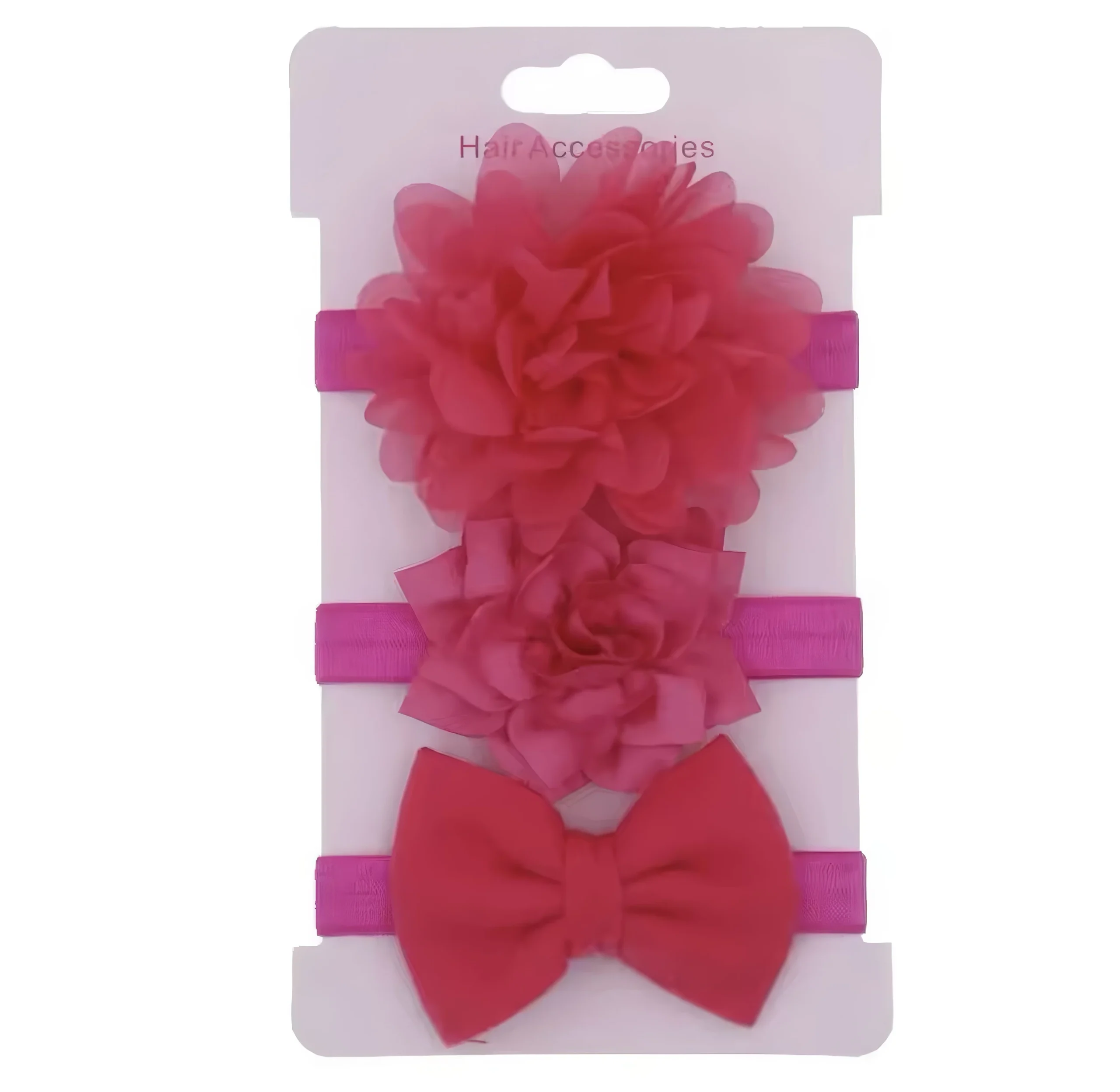 • Design : Ensemble de trois bandeaux avec fleurs et nœuds assortis