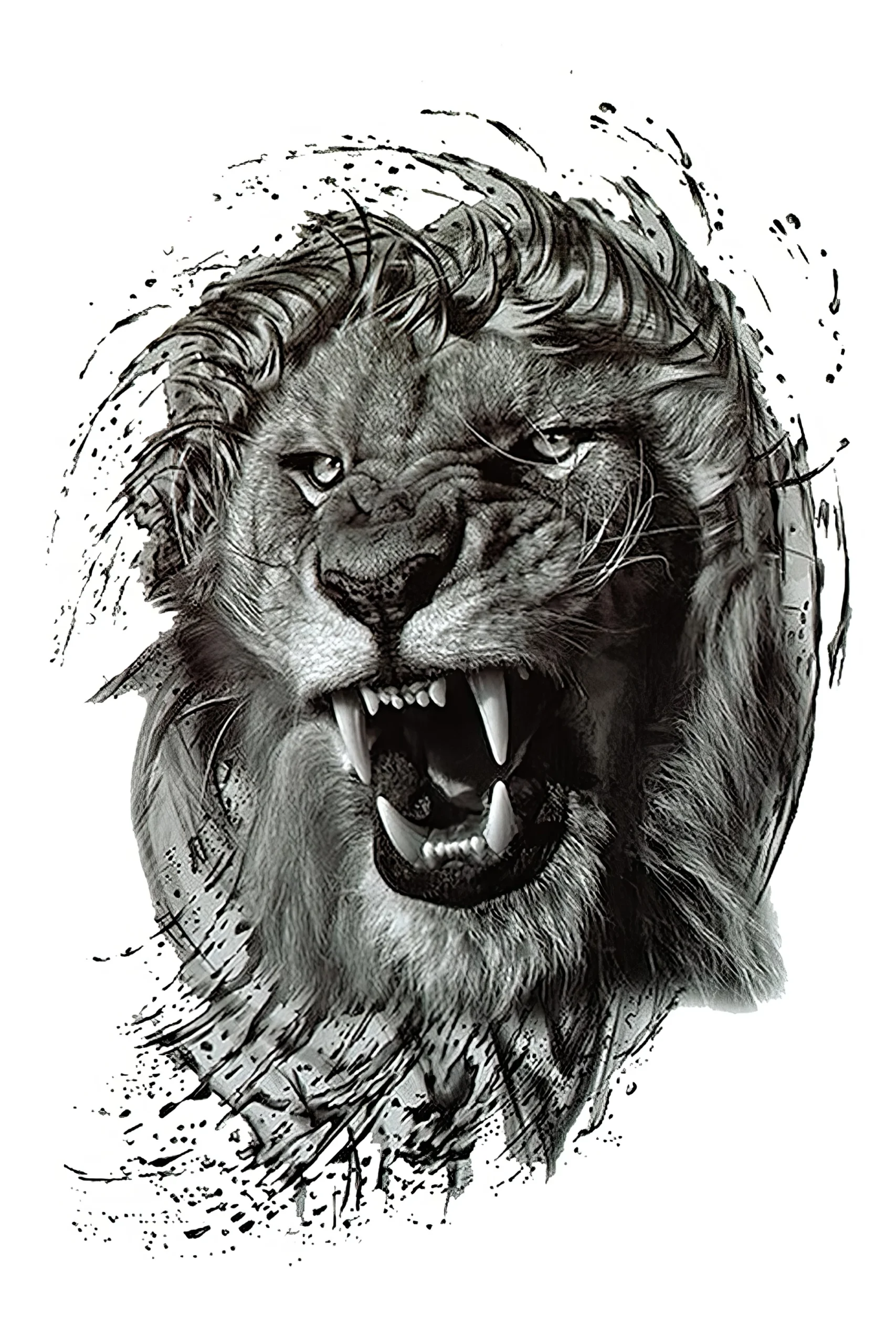 Motif : Tête de lion rugissant avec effet de griffures artistiques