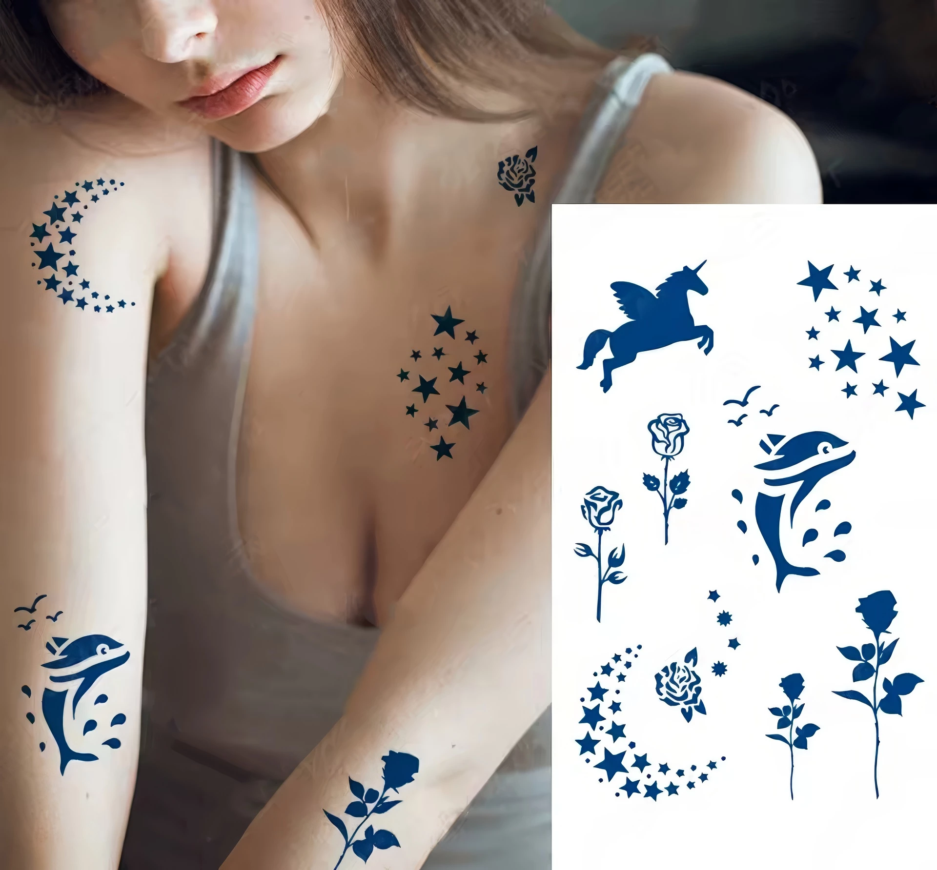 • 1 Feuille de tatouages temporaires (modèles variés)